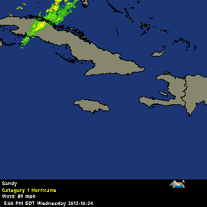 Update October 29, 2012. As has been predicted and feared, the storm has dramatically strengthened and not yet even made landfall. Its sheer size in fact makes it a monster. Click on the picture and see its development and path since it devastated the Caribbean.