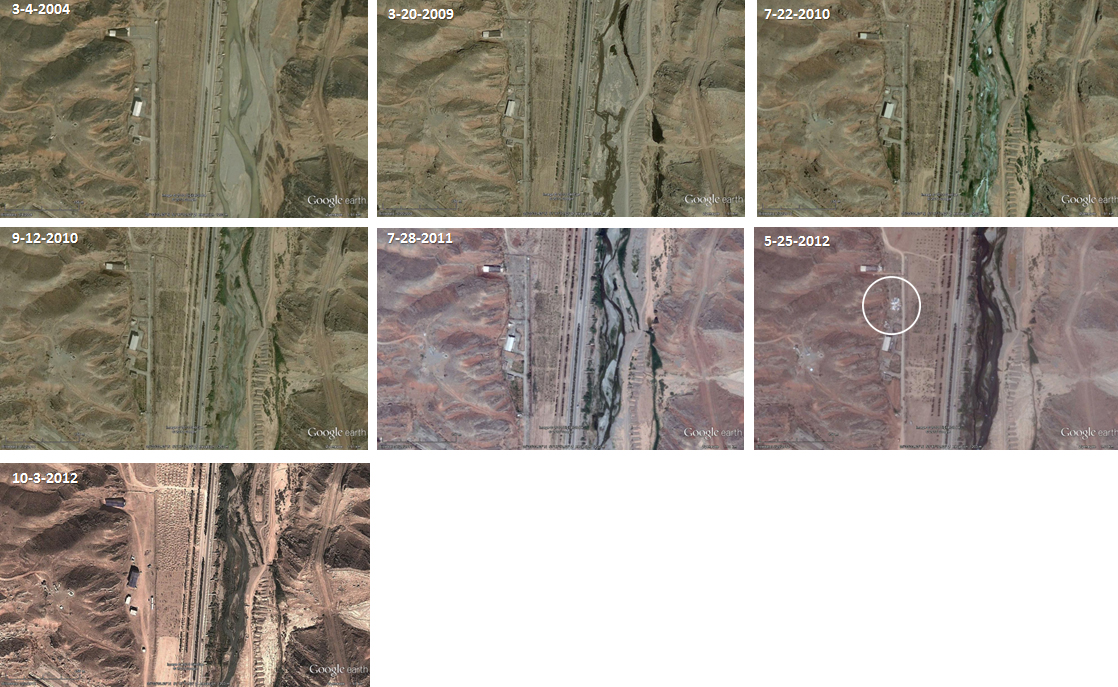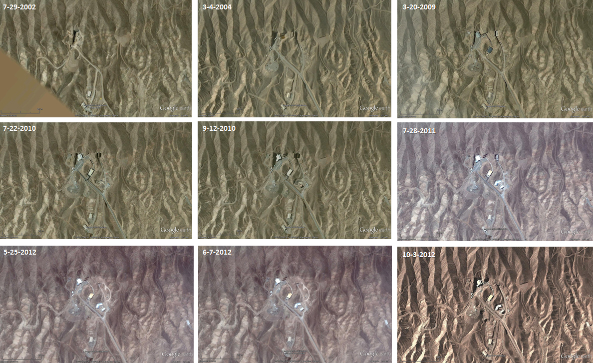 It consists of a number of buildings and apparently entrances for tunnels dug deep into the mountain. In spite of the possibility that Iran is still conducting experiments with high-explosives, it is, however, unlikely that before 2003 the site had been active. GoogleEarth provides timeline images which indicate that major tunnel construction activities only started after 2004 (in 2005, President Mahmoud Ajmadinejad, a downright tunnel expert by education, had been elected for the first time).