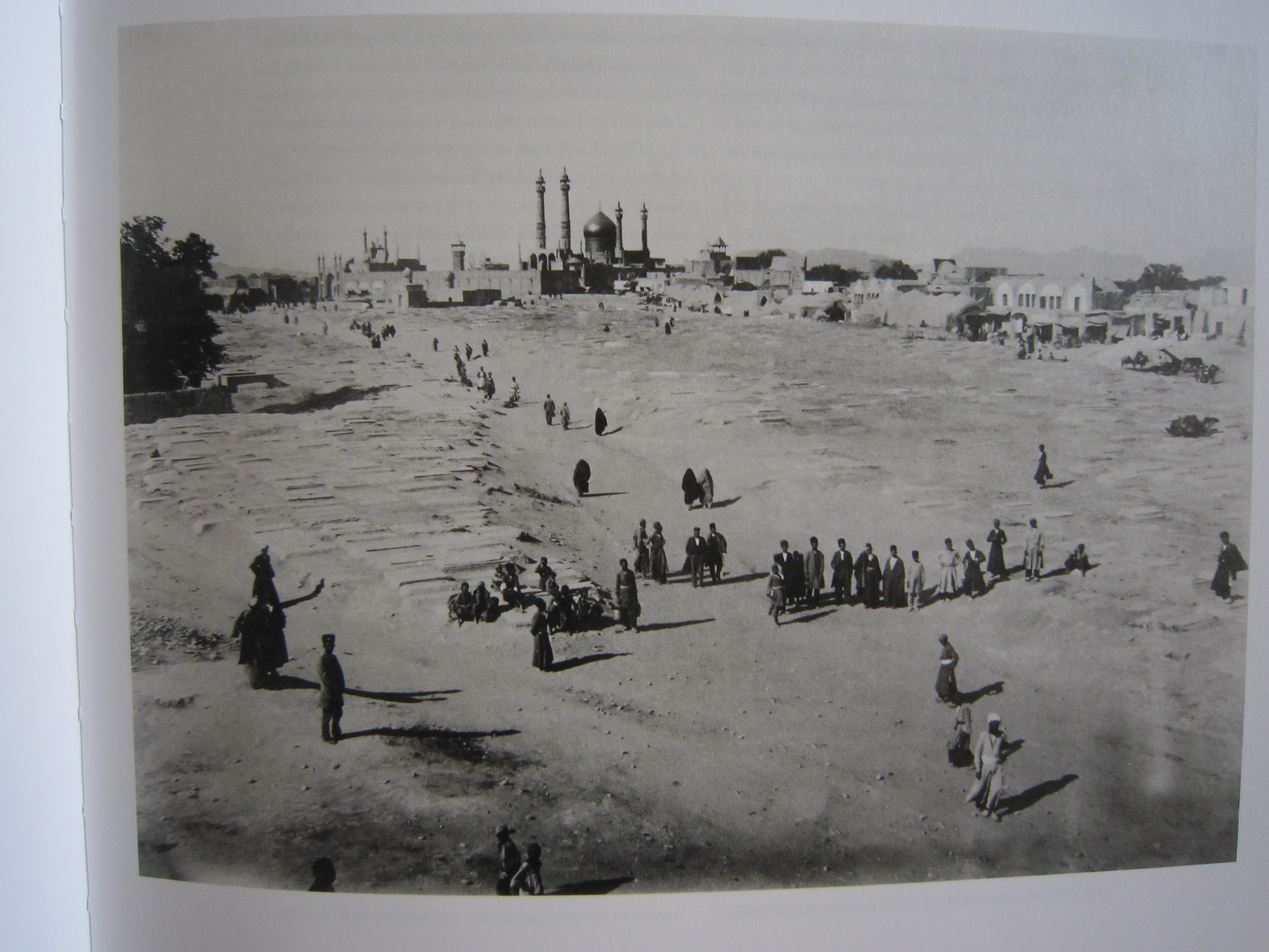 Apart from the more intimate pictures of young students in dialogue or in discussions in small groups, much of Berger’s part is also a mere collection of a tourist’s choice for a scrapbook. Some of the pictures by the court photographers of the two Qajar shahs are, on the other hand, breathtaking in particular when they depict bird’s eye views of now much transformed cities such as Qom, Samarra or Najaf. They were actually taken from hot-air balloons.